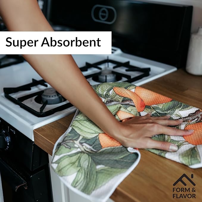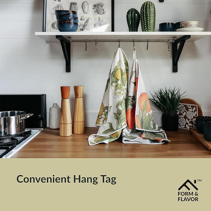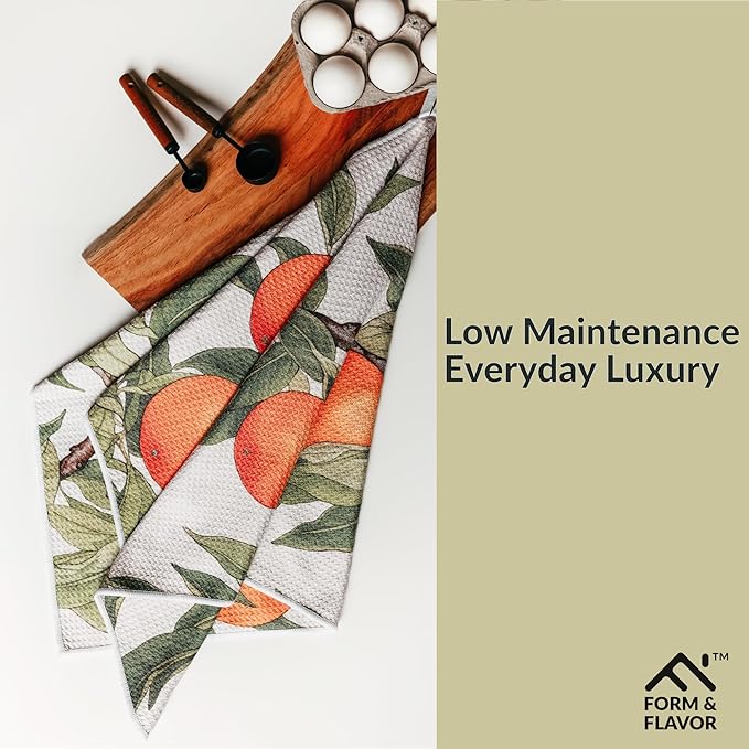 - 🍊 ELEGANT & AESTHETICALLY PLEASING DESIGNS: This 2-pack of aesthetic kitchen towels features vibrant and modern designs that bring a touch of charm to your kitchen. These decorative tea towels for kitchen aren’t just for cooking—they're an easy way to enhance your space!