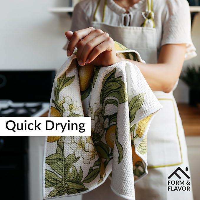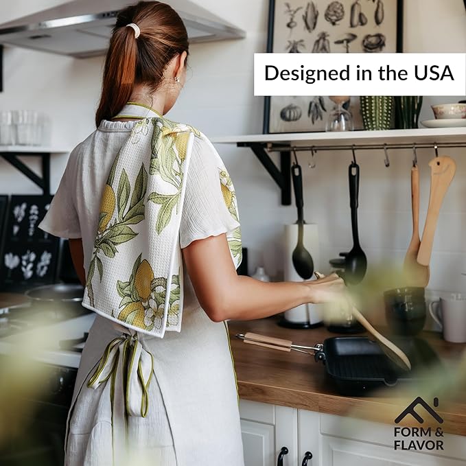 - 🍋 VIBRANT COLORS & VERSATILE: Designed in the USA, these luxury decorative kitchen towels come in eye-catching hues. Both functional and beautiful, these lemon dish towels are ideal for adding personality to your kitchen routine.