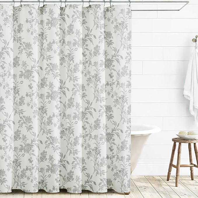 Vintage Farmhouse Shower Curtain for Bathroom Grey Shower Curtain Floral Cotton 72" W x 72" L