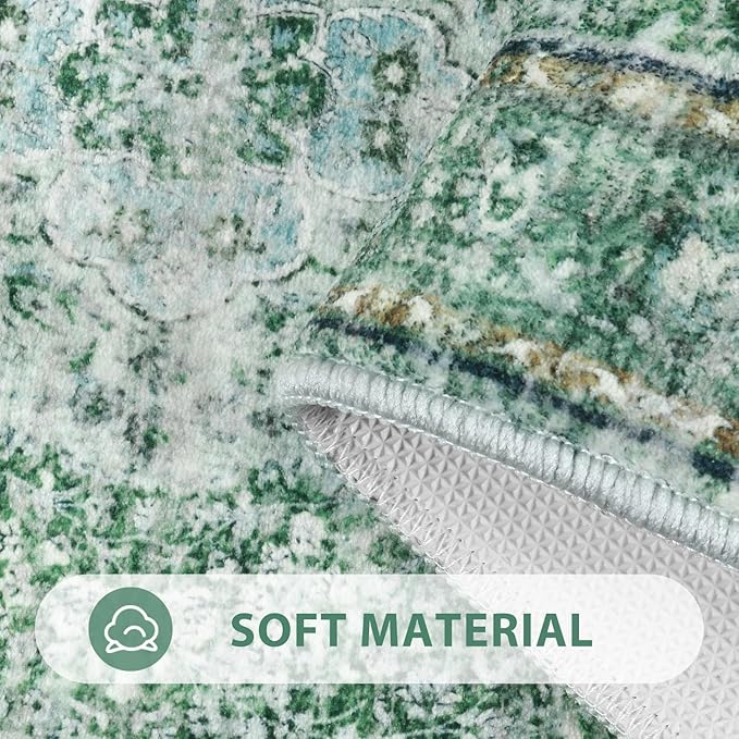 Uphome Bathroom Runner, Distressed Tribal Farmhouse Green Bathroom Mat, Large Bathroom Rugs Non Slip Washable, Oriental Retro Boho Bath Mat Runner for Bathtub Sink Laundry, 24x59 inch
