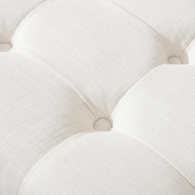 Wooden Entryway Bench for End of Bed Bench with Shoe Shelf Farmhouse Button Tufted Linen Fabric Upholstered Hallway Bench for Living Room/Bedroom/Hallway/Window Corner, Ivory