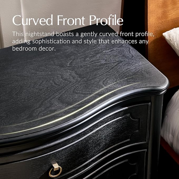 - Ample Storage Space - The nightstand has 3 drawers. Adequate storage capacity allows you to store family photos, lamp, books, clock, remote, and other items, providing generous space in your bedroom. The drawers are adorned with antique bronze metal handles, giving it a vintage charm.