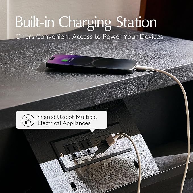 - Convenient Charging - This nightstand has a built-in charging station with USB ports & three-prong plugs. Gone are the days of hunting for a wall outlet or untangling or dealing with tangled cables. This convenient charging is ideal for the bedroom or living room.