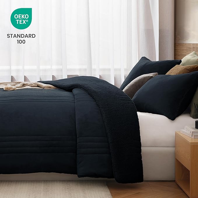 - 【Cozy and Warm】The unique designed sherpa comforter set boasts an incredibly soft texture, keeping you warm and cozy all night long