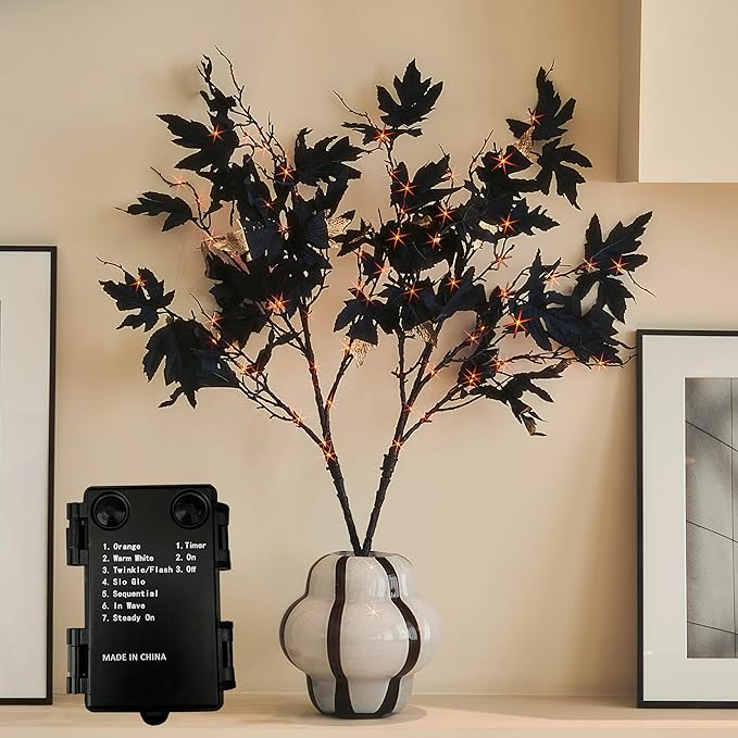 - Exclusive Design: Newly designed for 2024 Halloween, this twig lights is uniquely designed dramatic black and golden maple leaves with 120L bi-color lights for home Halloween decor