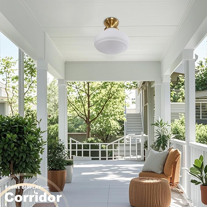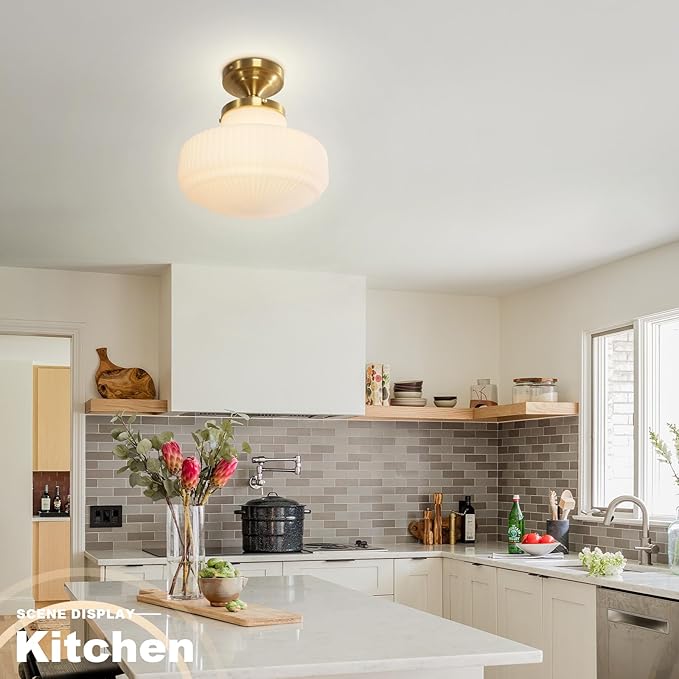 - [Bulb Base]: Glass semi flush mount ceiling light fixture can compatible E26 Edison bulbs or incandescent or LED bulb. Fully dimmable when used with a dimmable bulb and dimmer switch (Bulbs and dimmer both NOT Included);