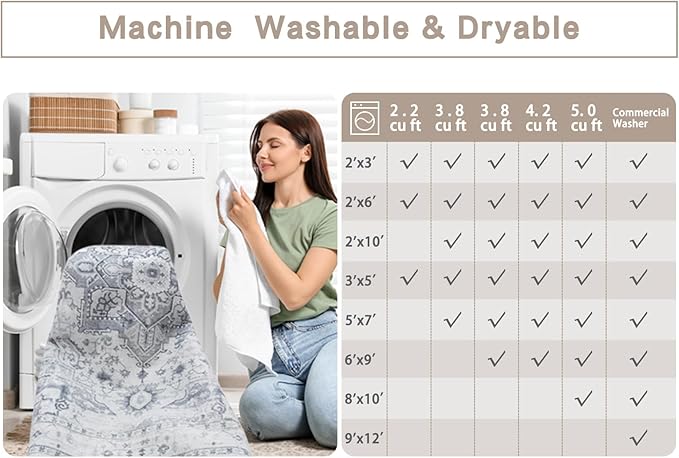 - Machine Washable Rug & Easy to Care:The washable rugs 8x10 can be machine washed,vacuumed or broom cleaned. In addition,we include a rug cleaning tool, perfect for ridding the rug of lint, fluff, pet hair, crumbs, and other dry debris, which keeps it tidier and prepares it better for a machine wash,so the grey area rug is ideal for those high-traffic areas in houses with children and pets
