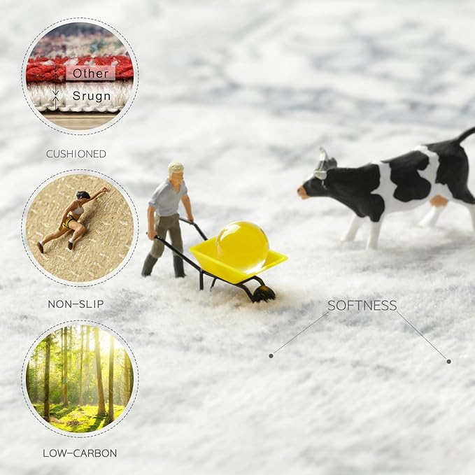 - Upgraded Thickened & Ultra Soft Comfortable:Srugn's 8x10 area rug is made from top quality polyester and faux cashmere fabrics that are silky smooth and velvety to the touch.The core backing has been upgraded and thickened comprehensively, providing better cushioning and support performance compared to ordinary machine washable carpets.Therefore,walking barefoot is like stepping on clouds, keeping your feet warm and relaxed, immersing yourself in double the comfort with every step