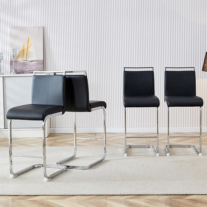 - 【Sturdy and Durable Counter Height Bar Stools】: This bar stool features a reinforced C-shaped chrome metal base with a maximum weight capacity of 300 pounds. The footrest on the barstools provides extra support, enhancing your sitting comfort and reducing leg fatigue.