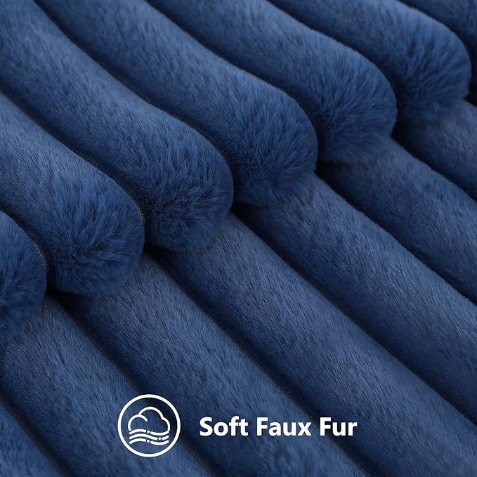 decorUhome Faux Fur Throw Pillow Covers 24x24 Set of 2, Decorative Soft Plush Striped Neutral Euro Pillow Covers with Velvet Back for Bed, Living Room Home Decor, Blue