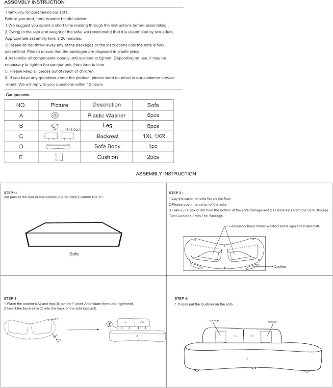 - ERGONOMIC HALF MOON DESIGN: The graceful curved shape not only enhances aesthetic appeal but also provides superior ergonomic support making this sofa couch perfect for lounging or entertaining guests