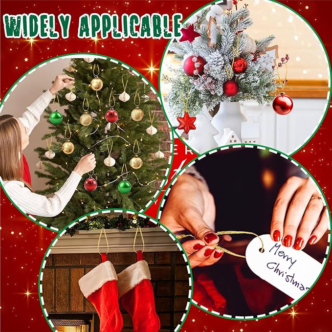 - Creative Design:Our Christmas ribbon ornament hangers are rich in colors, including red, green, gold and silver. You can choose and match the string for Christmas ornaments according to your needs. Gold and silver ribbons have a glitter effect, and the glitter ornament hangers ribbon make your Christmas decorations or gifts look more beautiful. String for ornaments is suitable for hanging on a string of lights or fixing on your tree. Christmas ornament string can tie a bunch of gifts