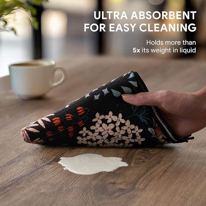 - [ Next-level Absorbency ] - These absorbent kitchen towels are made with high quality microfiber fabric and can hold more than 5x their weight in liquid, making drying dishes and cleaning up kitchen a breeze.
