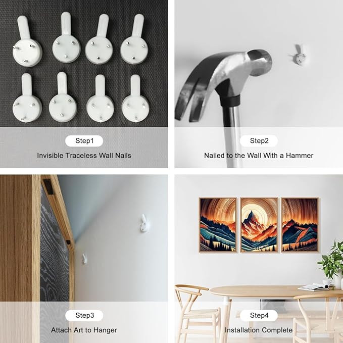- 【Easy to Hang】16×24 inches×3pcs (40×60cm×3pcs) neutral abstract landscape frame set is easy to hang, ready to use, with metal hooks and non-marking nails. It takes only 5 minutes to finish hanging.