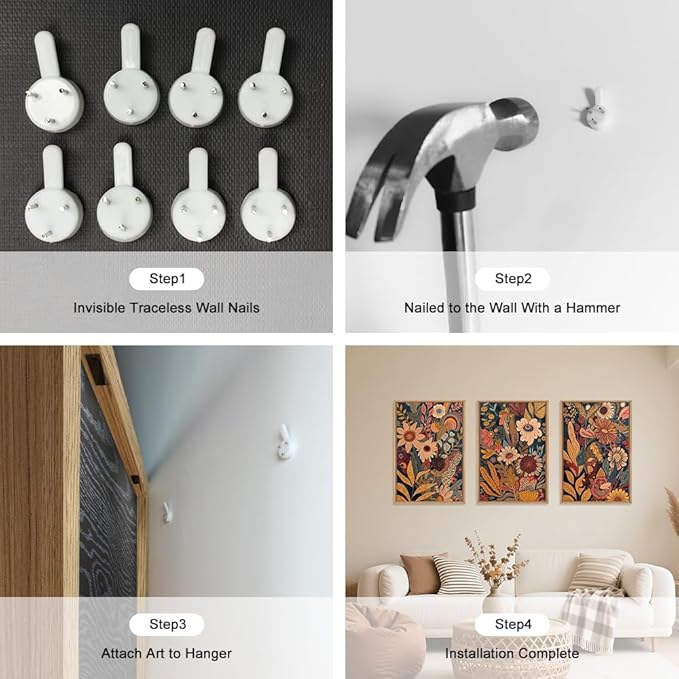 - 【Easy to Hang】16×24 inches×3pcs (40×60cm×3pcs) boho retro orange flower landscape frame set is easy to hang, ready to use, with metal hooks and non-marking nails. It takes only 5 minutes to finish hanging.