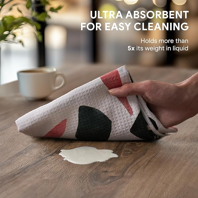 - [ Next-level Absorbency ] - These absorbent kitchen towels are made with high quality microfiber fabric and can hold more than 5x their weight in liquid, making drying dishes and cleaning up kitchen a breeze.