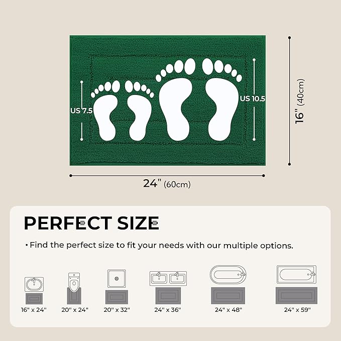GRANNY SAYS Green Bathroom Rugs Non Slip, 16" x 24", Bath Rugs for Bathroom, Small Bath Rug Washable,Absorbent Bath Mats for Shower Room Floor, Microfiber Mat for Tub, Absorbent Shower Rugs