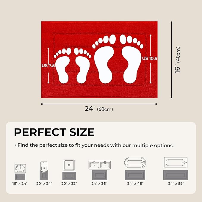GRANNY SAYS Bathroom Rug, 16" X 24" Bath Rugs for Bathroom, Microfiber Cute Bath Mats, Washable Rug for Bath Tub, Bathroom Mat Non-Slip, Bath Decorations, Red