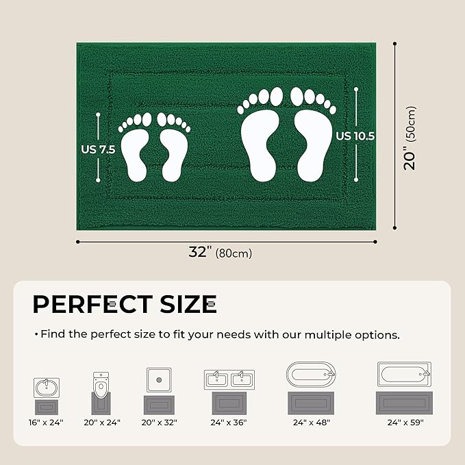 GRANNY SAYS Green Bathroom Rugs Non Slip, 20" x 32", Bath Rugs for Bathroom, Small Bath Rug Washable,Absorbent Bath Mats for Floor, Microfiber Bath Mat for Tub, Absorbent Shower Rugs