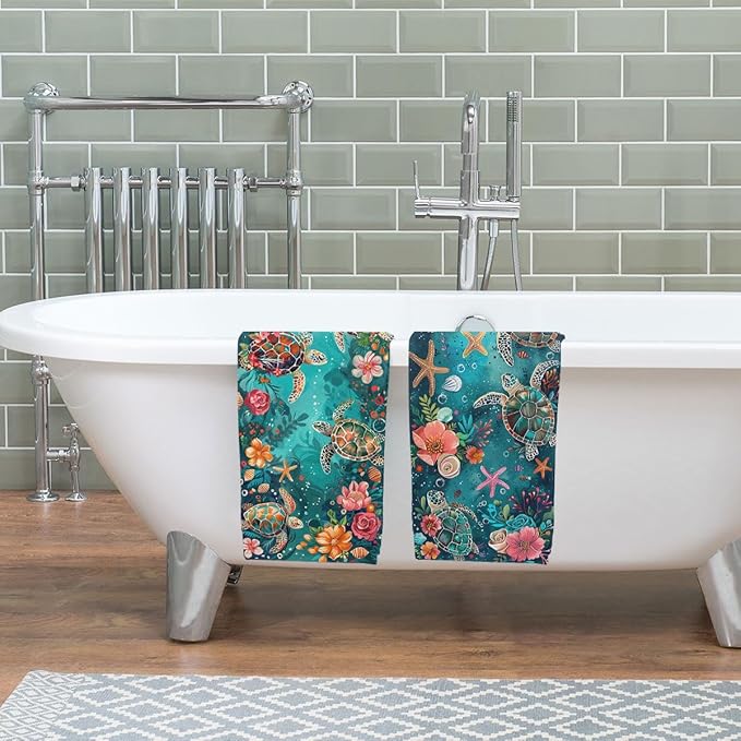 - Sea Turtle Starfish Tea Towels for Kitchen 2 Piece Measuring 16X24 Inch Perfect Size for Everyday Use. Long-Lasting Durability and Performance