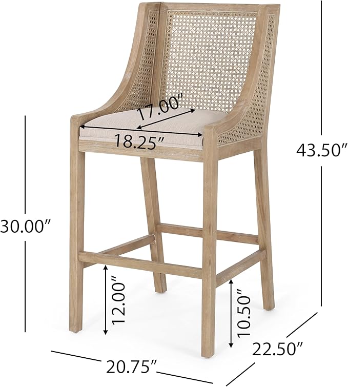 - 【Perfect Bar Stool Height】Choose the perfect size for you and your furniture with our 30" Fabric Upholstered Wood and Cane Barstools. With dimensions of 20.75" W x 22.50" D x 43.50" H and a seat height of 30.00 inches, these barstools are designed to seamlessly blend into your existing decor.