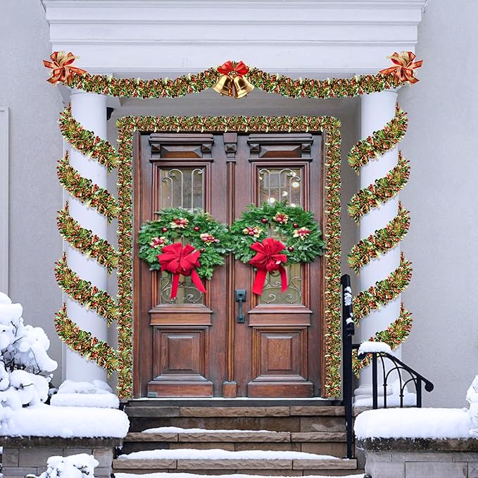 - [ Easy to Use]: The Xmas tree garland decorations can be bend or twisted into any shape according to your preference, and you can trim it into different sizes to fit your DIY craft, easy to attract your friend attention and nicely add a sense of vitality to your Christmas holiday party