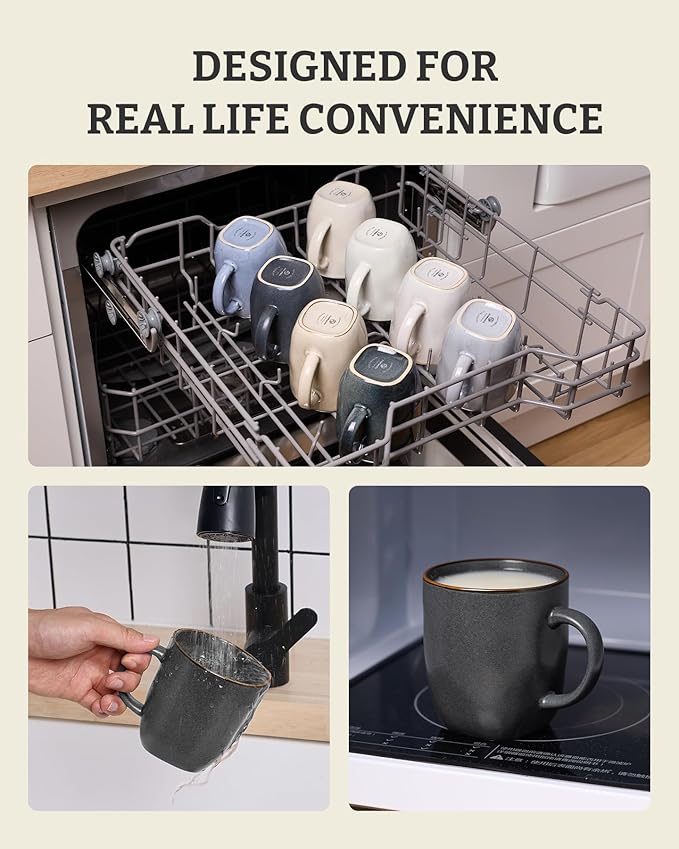 - 【Coffee Mugs Set of 4】Each mug holds up to 13oz of your favorite beverage. Great for Latte, Hot Tea, Cappuccino, Mocha, Cocoa, Milk, Hot Chocolate, smoothie,and more. Suitable for families and gatherings.