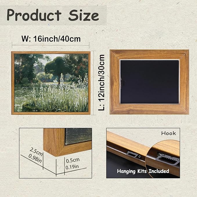 - 【Ready To Hang】Measuring 12x16Inch(30x40cm), this framed canvas art wall decor arrives ready to hang on the wall with hanging kits. (Before nailing the hook onto your wall, please refer to the installation instruction image provided. ) This framed vintage landscape wall art decor piece will bring a soothing effect to any room of your home with its calming colors. This abstract art print is perfect for farmhouse style spaces, with a bold elegance that makes it an iconic centerpiece for you.