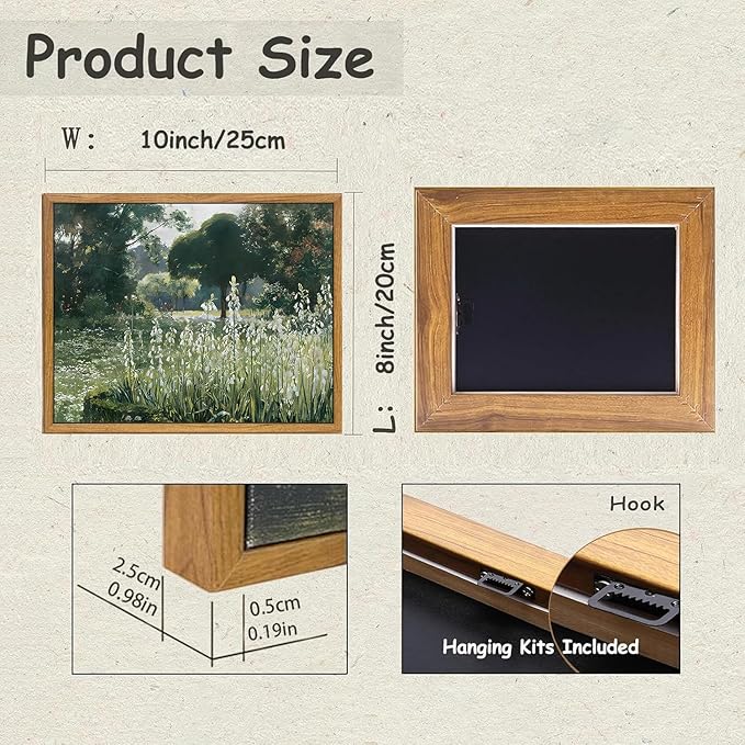 - 【Ready To Hang】Measuring 8x10Inch(20x25cm), this framed canvas art wall decor arrives ready to hang on the wall with hanging kits. (Before nailing the hook onto your wall, please refer to the installation instruction image provided. ) This framed vintage landscape wall art decor piece will bring a soothing effect to any room of your home with its calming colors. This abstract art print is perfect for farmhouse style spaces, with a bold elegance that makes it an iconic centerpiece for you.