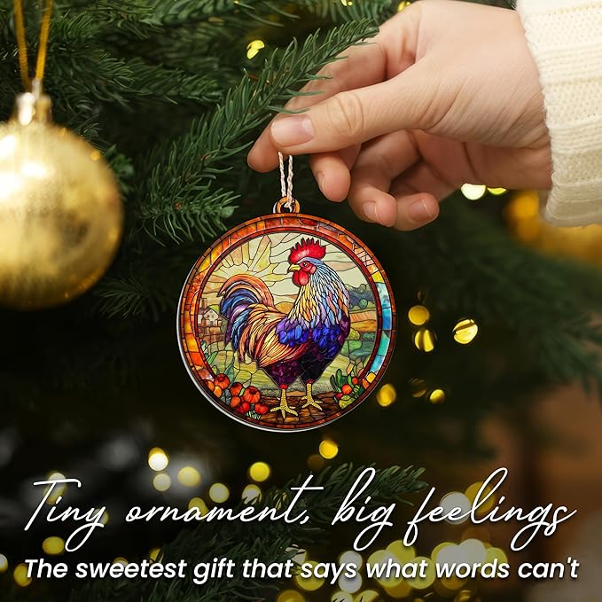 OASSIE Chicken Ornaments for Christmas Tree - Suncatcher Christmas Ornaments 2025 - Chicken Gifts for Women Men, Rooster Gifts for Women Animal Farmhouse Lovers, Rustic Home Decor