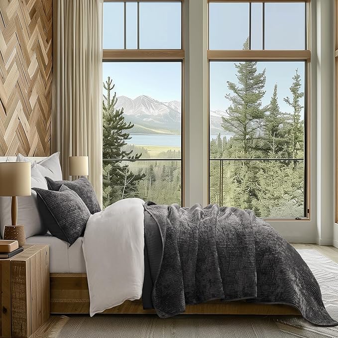 - TIMELESS ELEGANCE QUILT - Elevate your bedroom decor with our channel velvet quilt set. Crafted to perfection, the subtle shimmer of the unique crushed velvet material evokes a captivating sense of luxury and sophistication. Its striking allure ensures it becomes the centerpiece of any room, whether as a standalone feature or layered with other textures, infusing your space with elegant refinement.