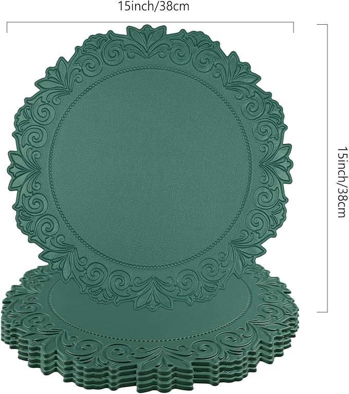 Noctiflorous Round Faux Leather 15 Inch Placemats Set of 4 Waterproof Wipeable Heat Resistant Tablemat for Dining Table Kitchen Non Slip Oilproof Table Place Mat for Indoor Outdoor(Green, 4)