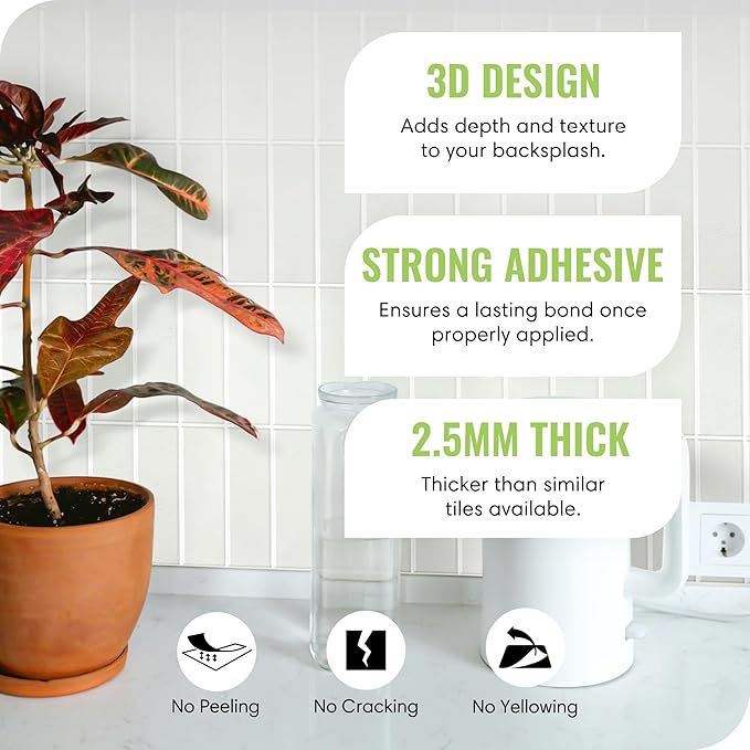 - Modern 3D Design – Instantly upgrade your kitchen, bathroom, laundry room, or fireplace with these extra-thick 3D peel and stick tiles. The realistic stone look and polished finish add depth and style to any space.