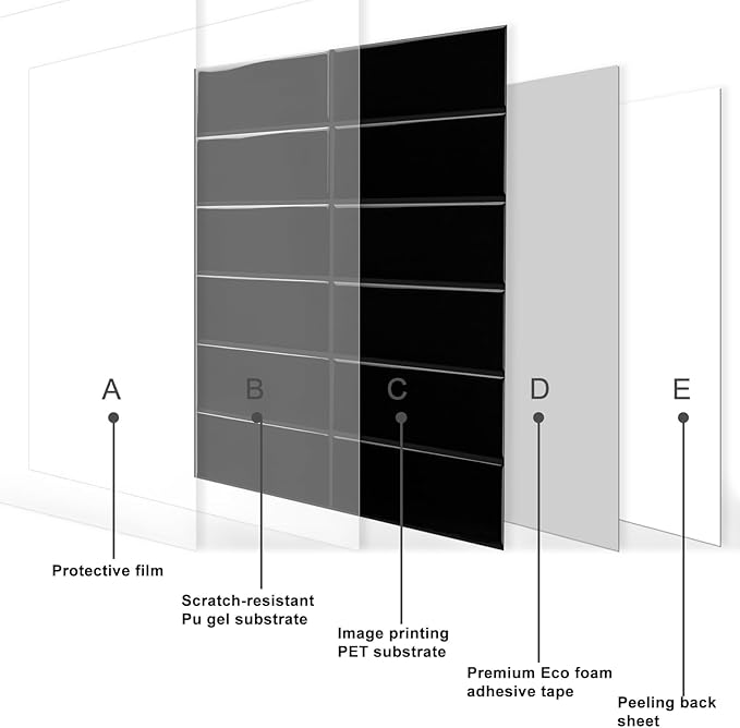 - Strong Commercial Adhesive – Features a powerful self-adhesive backing that sticks securely to smooth or lightly textured walls without grout or messy glue—perfect for long-lasting performance.