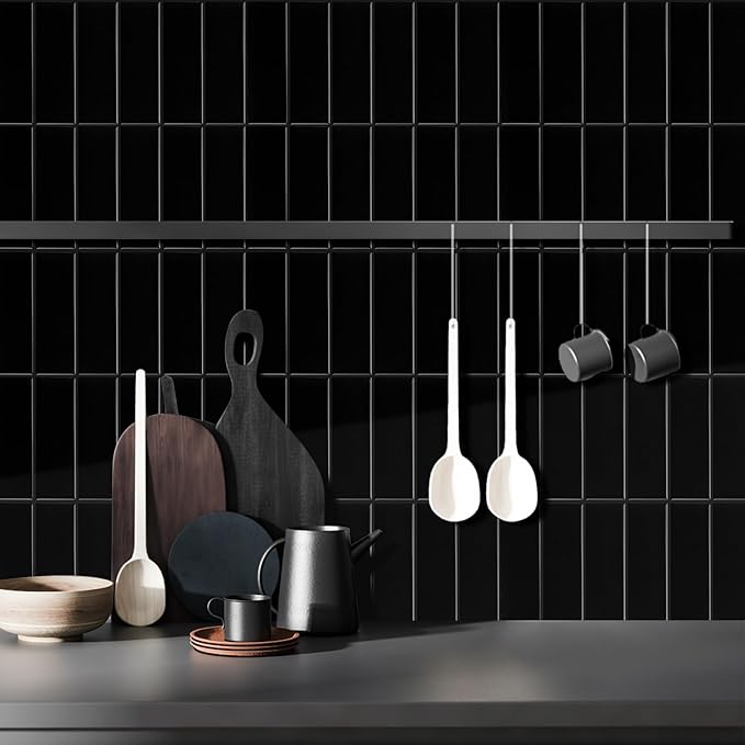 5 Pack Peel and Stick Backsplash Subway Tiles, Extra Thick 3D Wall Panels, Heat & Water Resistant, Easy DIY Kitchen, Bathroom, Laundry, Fireplace & Rental Home Wall Décor (12 x 12 in), Black