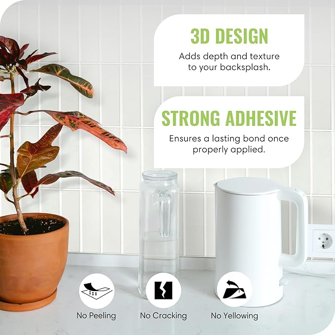 - Modern 3D Design – Instantly upgrade your kitchen, bathroom, laundry room, or fireplace with these extra-thick 3D peel and stick tiles. The realistic stone look and polished finish add depth and style to any space.