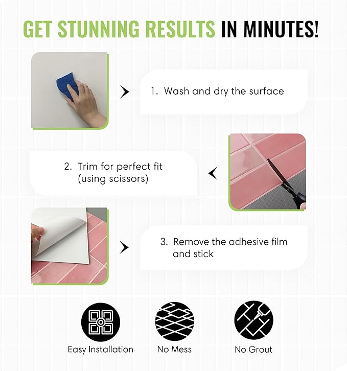 - Strong Commercial Adhesive – Features a powerful self-adhesive backing that sticks securely to smooth or lightly textured walls without grout or messy glue—perfect for long-lasting performance.