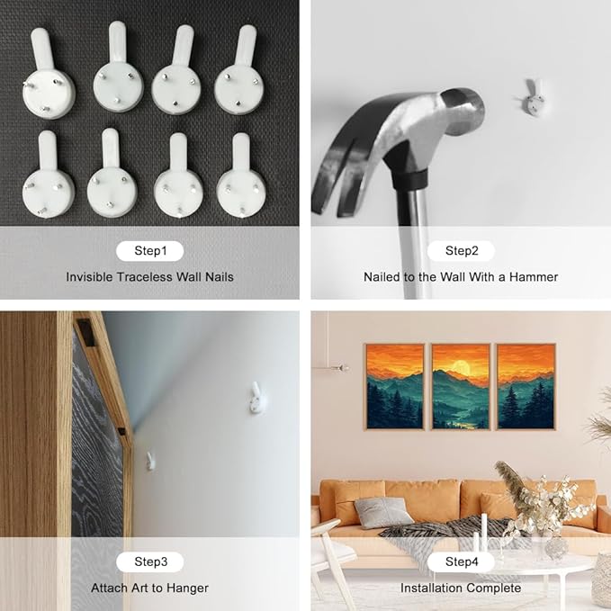 - 【Easy to Hang】16×24 inches×3pcs (40×60cm×3pcs) neutral orange green landscape frame set is easy to hang, ready to use, with metal hooks and non-marking nails. It takes only 5 minutes to finish hanging.