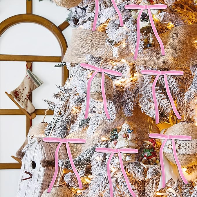 - Velvet Bows for Christmas Tree: This 24-pack of Pink velvet bows, sized at 5x7 inches, is perfect for decorating Christmas trees, wreaths, gifts, and more. Their classic design and rich texture make them the ideal accent for any festive setting
