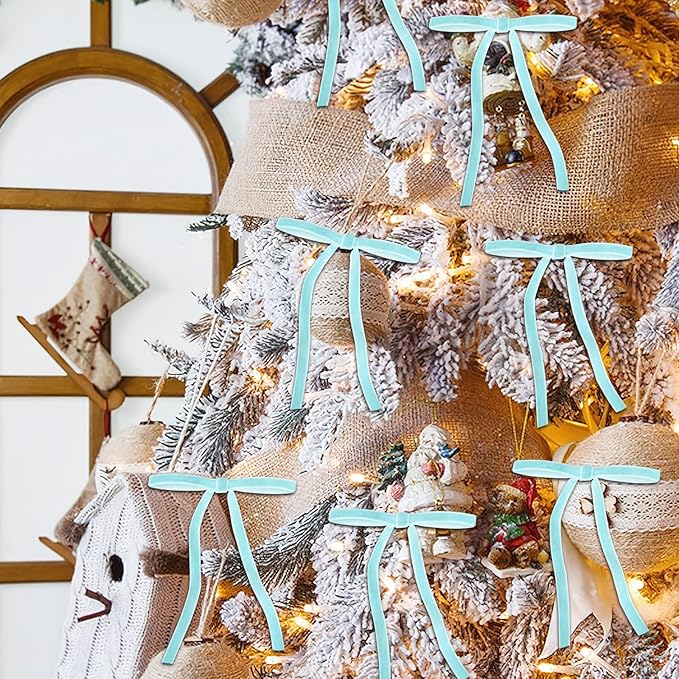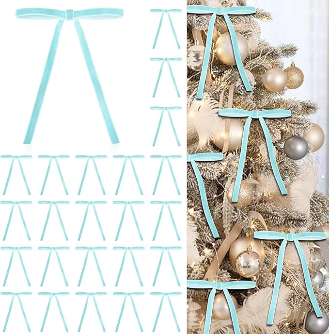 - Velvet Bows for Christmas Tree: This 24-pack of blue velvet bows, sized at 5x7 inches, is perfect for decorating Christmas trees, wreaths, gifts, and more. Their classic design and rich texture make them the ideal accent for any festive setting