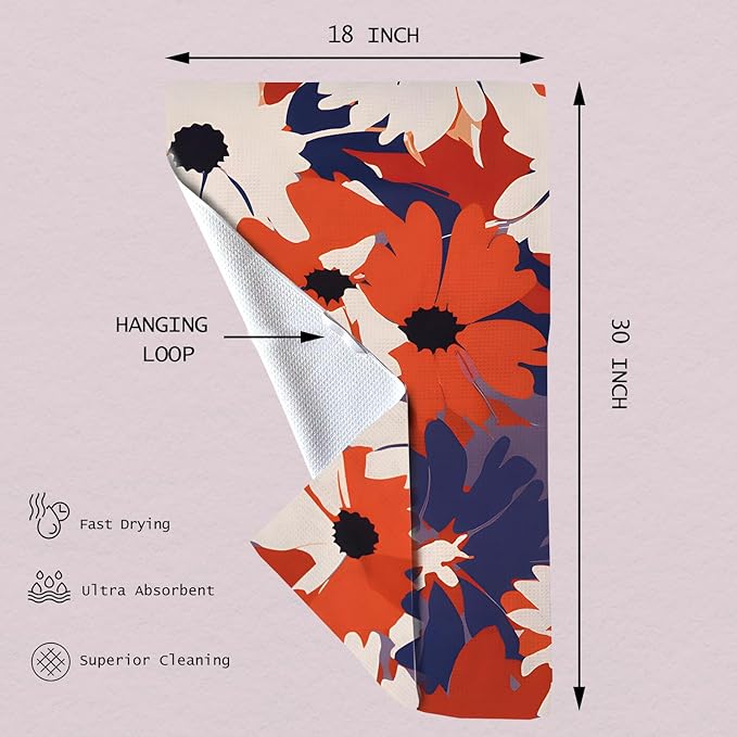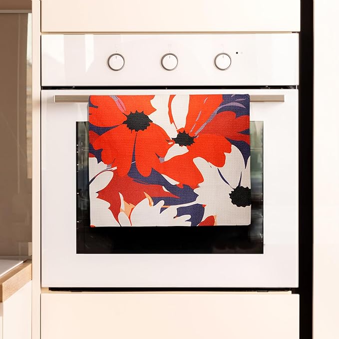 Eunzel Kitchen Tea Towel Quick Dry Microfiber Dish Towels 18x30 Red Navy Flower