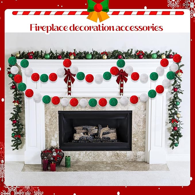 - Wide Applications: this Christmas pom pom garland has 5.9 inches of empty space on both sides for easy hanging, hang it on your mantel, fireplace, wall, window, doorway, a mirror, Christmas tree, a picture frame, a large wall clock, a bookcase, hung above a crib, bed or anywhere else you need a fun and colorful decoration; Our multi color felt ball garlands are reusable year after year, suitable for your home and parties