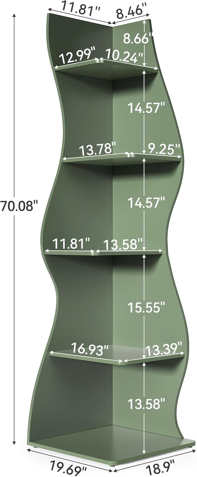 LITTLE TREE Small Corner Shelf, Modern 5-Tier Wall Corner Bookshelf, Stylish Bookcase Storage Rack for Small Space, Living Room, Bedroom