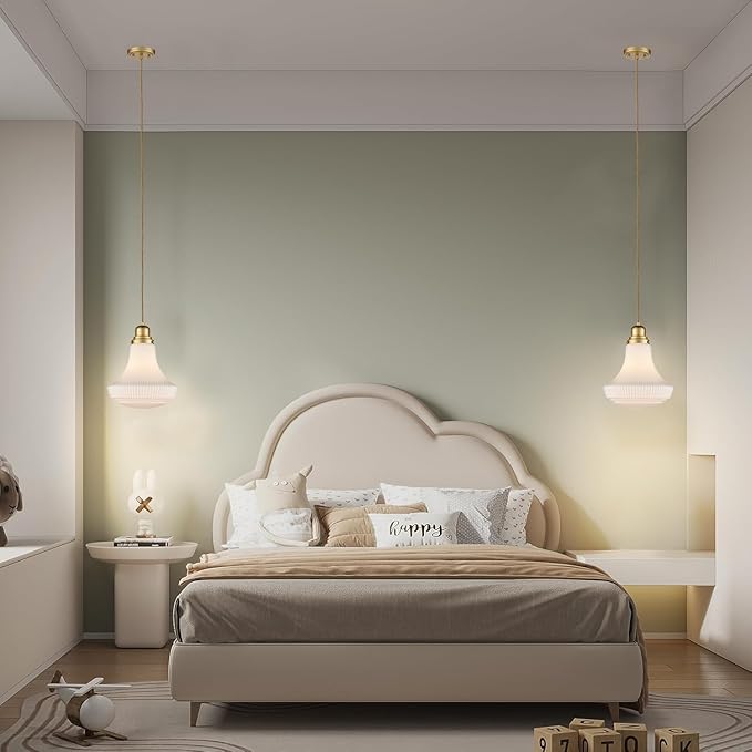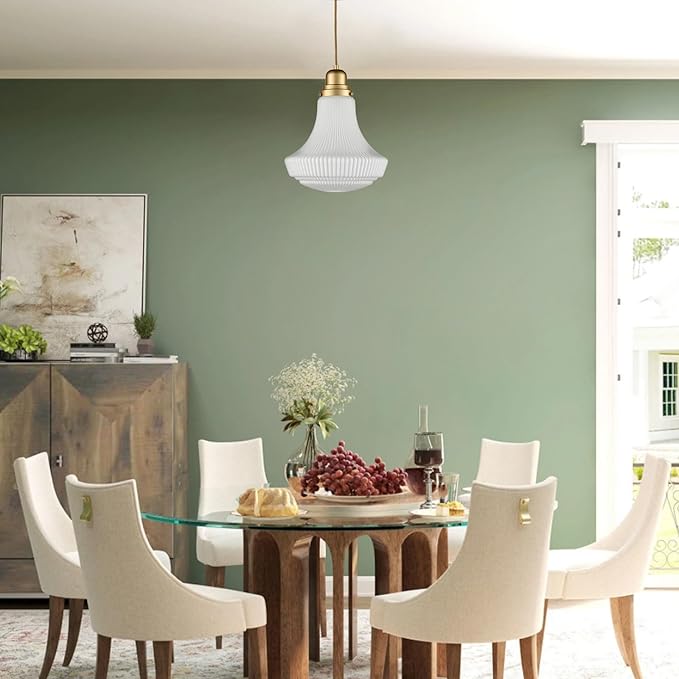 - Vase Shaped Shade: this pendant light's shade features on vase shaped ribbed glass which is in milky white finish,transmitting light softly and warmly; accented with gold finish stylish and chic, no matter where you put this pendant, this lamp will be an eye-catching tune