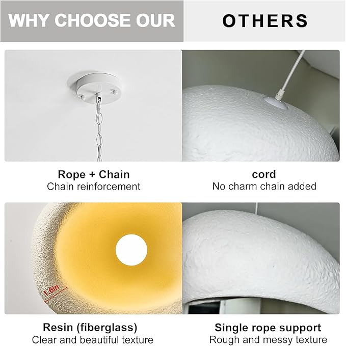 - 【Upgraded Resin Material】The white pendant light upgraded high-density resin material (Fiberglass) to be more durable and substantial than ordinary lamps. Durable and resistant to cracking or discoloration over time. Made of hand-textured matte surface, thickened sandblasting layer, it offers the look of raw stone or plaster while remaining lightweight.