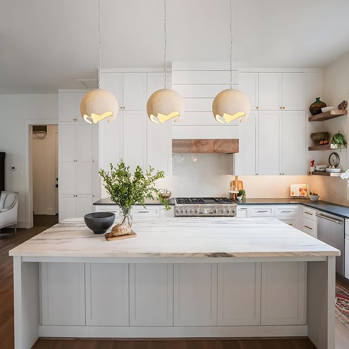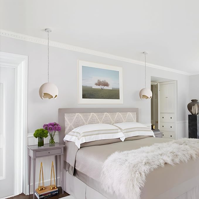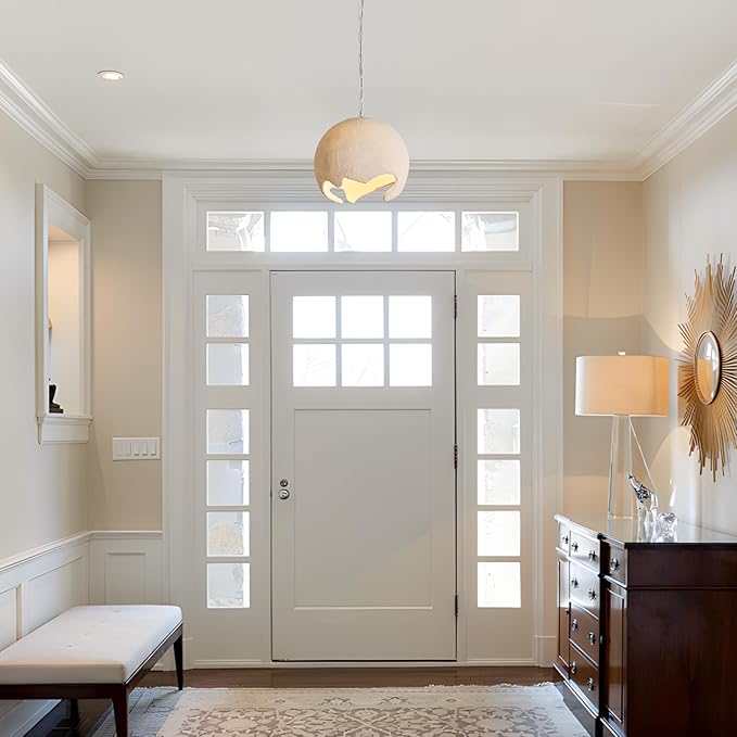 - 【Upgraded Resain Material】The white pendant light upgraded high-density resin material (Fiberglass) to be more durable and substantial than ordinary lamps. Durable and resistant to cracking or discoloration over time. Made of hand-textured matte surface, thickened sandblasting layer, it offers the look of raw stone or plaster while remaining lightweight.