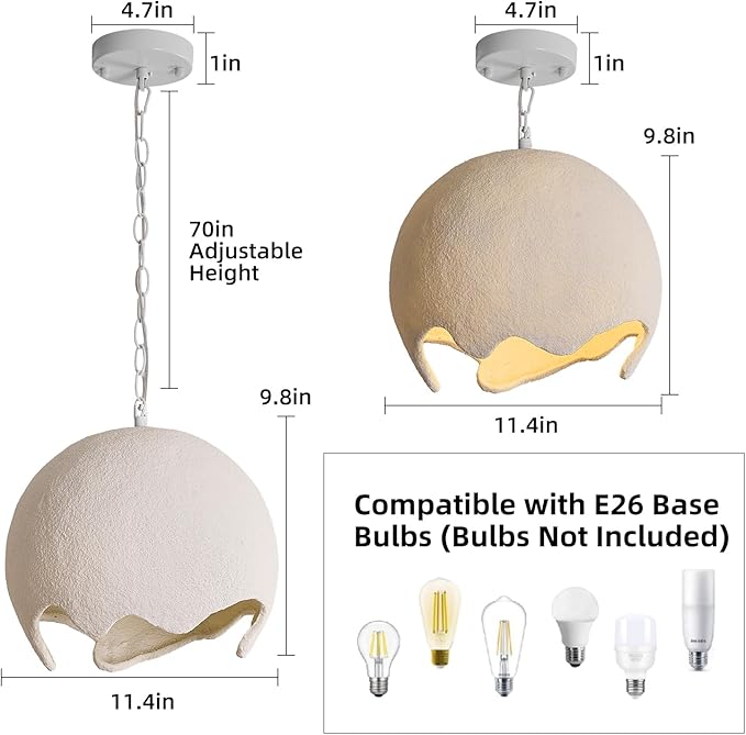 - 【Easy to Install】 The white pendant lighting includes installation instructions and accessories required for installation. It uses the American standard E26 lamp holder and up to 60W. Compatible with various E26 bulbs: LED, Incandescent, CFL, Halogen (Bulb not included). wires meet safety standards.