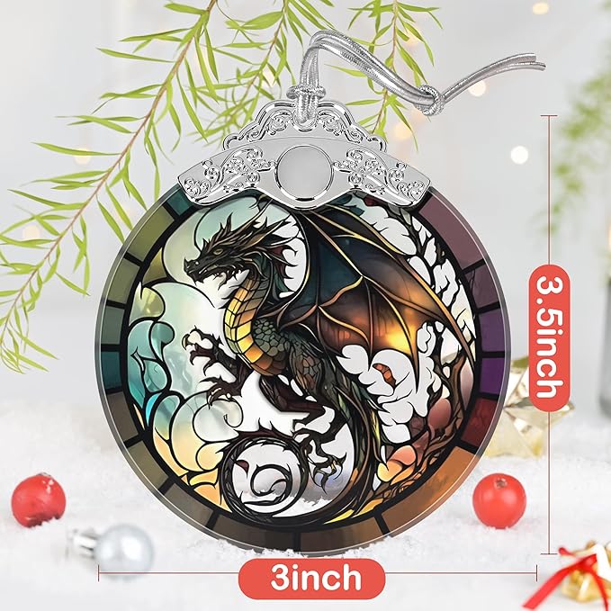 Dragon Stained Glass Ornament, Christmas Ornaments, Xmas Tree Decorations, Ornaments for Christmas Tree, Holiday Presents, Gift Exchange Ideas