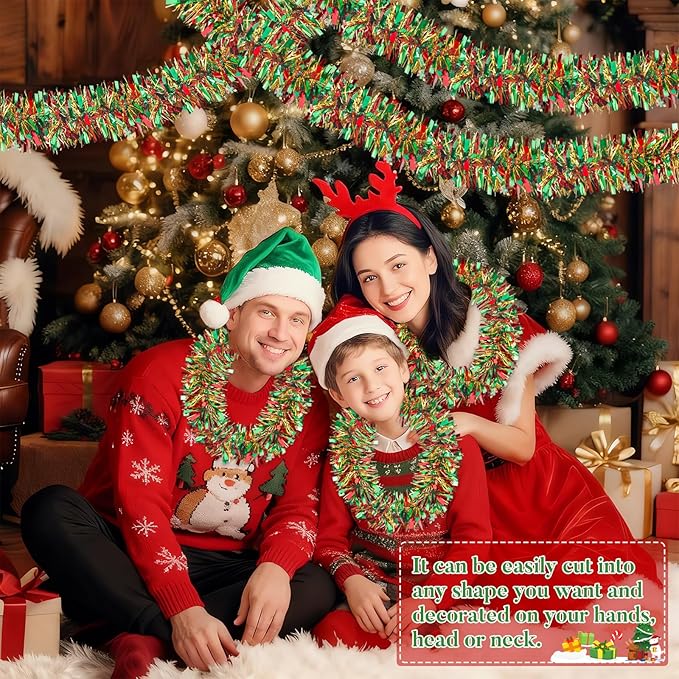 - 【Ideal for Holiday Decoration】Suitable for both indoor and outdoor use, nice for parties, weddings, festivals. This tinsel garland is ideal for decorating Christmas tables, door frames, walls, mantels, fireplaces, window sills, stair railings, and more. Or hang it on the ceiling, Christmas tree, stairs, branches and any places you want to decorate, easily beautify your home, celebrate the upcoming Christmas