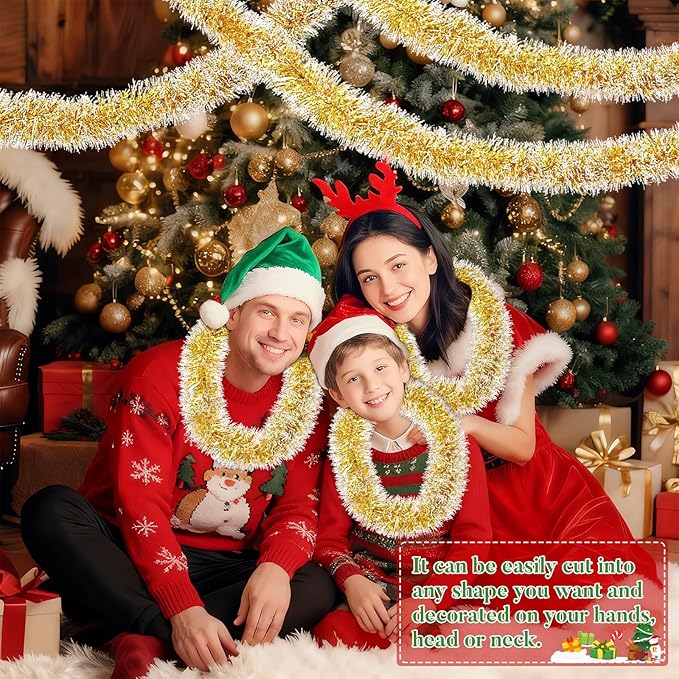 - 【Ideal for Holiday Decoration】Suitable for Christmas both indoor and outdoor use, nice for parties, weddings, festivals. This tinsel garland is ideal for decorating Christmas tables, door frames, walls, mantels, fireplaces, window sills, stair railings, and more. Or hang it on the ceiling, Christmas tree, stairs, branches and any places you want to decorate, easily beautify your home, celebrate the upcoming Christmas
